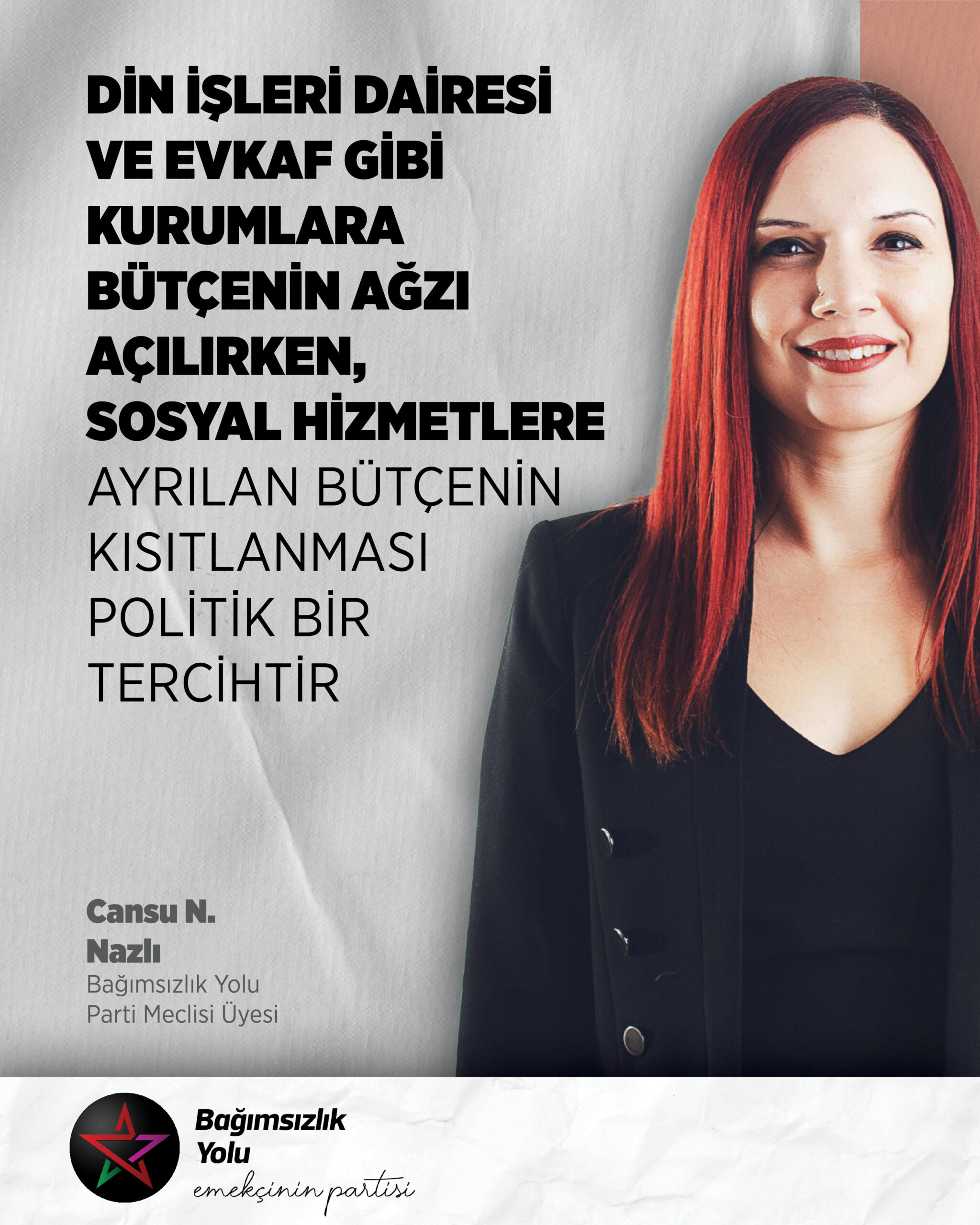 Nazlı: Din İşleri Dairesi ve Evkaf Gibi Kurumlara Bütçenin Ağzı Açılırken, Sosyal Hizmetlere Ayrılan Bütçenin Kısıtlanması Politik Bir Tercihtir