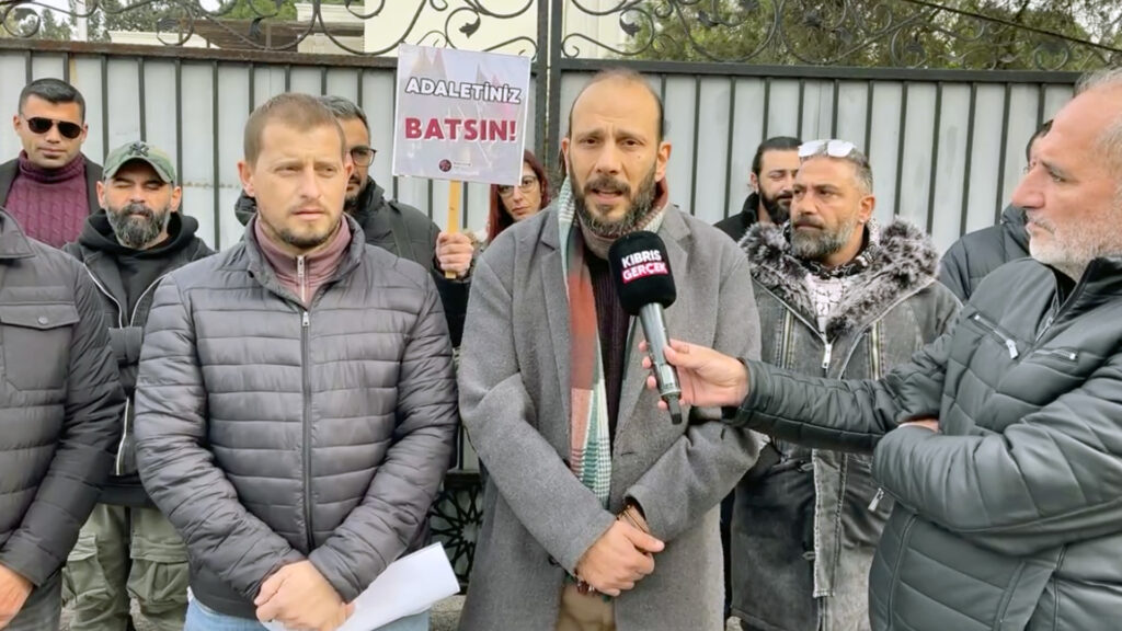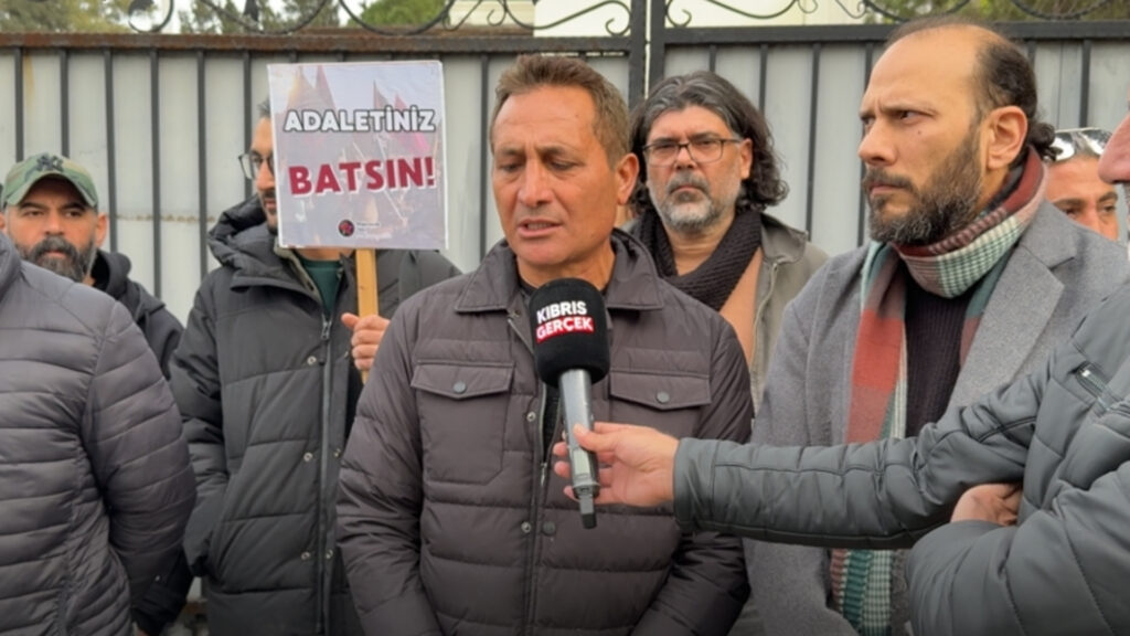 Eylemde konuşan KTOEÖS Genel Sekreteri Tahir Gökçebel ise mahkemelerin siyasallaştığını, kararların siparişe göre verildiğini, kimlerin korunup kimlerin cezalandırıldığının açıkça görüldüğünü söyledi. Hukukun adalet için var olduğunu vurgulayan Gökçebel, adaleti temsil etmeyen bir hukuk düzeninin siyasal yapının bir sopası haline geldiğini ifade etti.