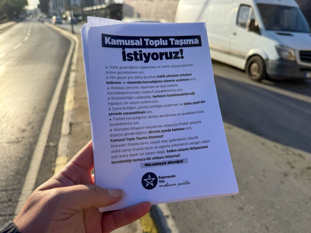Bağımsızlık Yolu dağıttığı bildiride, mevcut ulaşım düzeninin özel araç sahipliğini zorunlu hale getirdiğini, bu durumun akaryakıt ithalatçılarından sigorta şirketlerine kadar birçok özel sektör alanını zenginleştirdiğini, buna karşın halkın giderek artan ulaşım yükü altında ezildiğini ifade edildi.