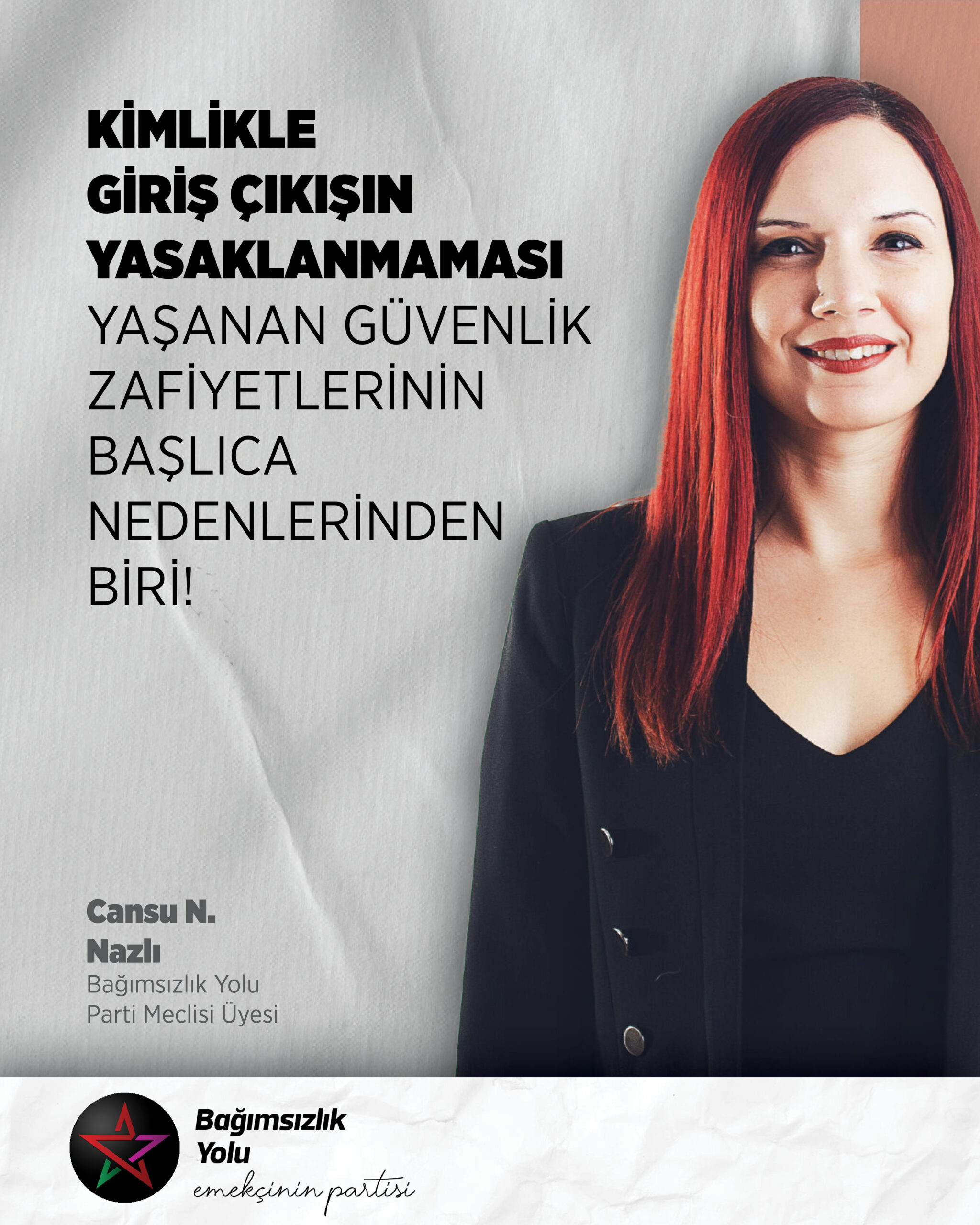 Nazlı, kimlikle giriş çıkışların hâlâ yasaklanmamış olmasının ciddi bir güvenlik zafiyeti yarattığını belirterek, İçişleri Bakanı’nın ve polis teşkilatının bu durumdan sorumluluk duymamasını, topluma hesap vermemesini kabul edilemez olarak nitelendirdi.