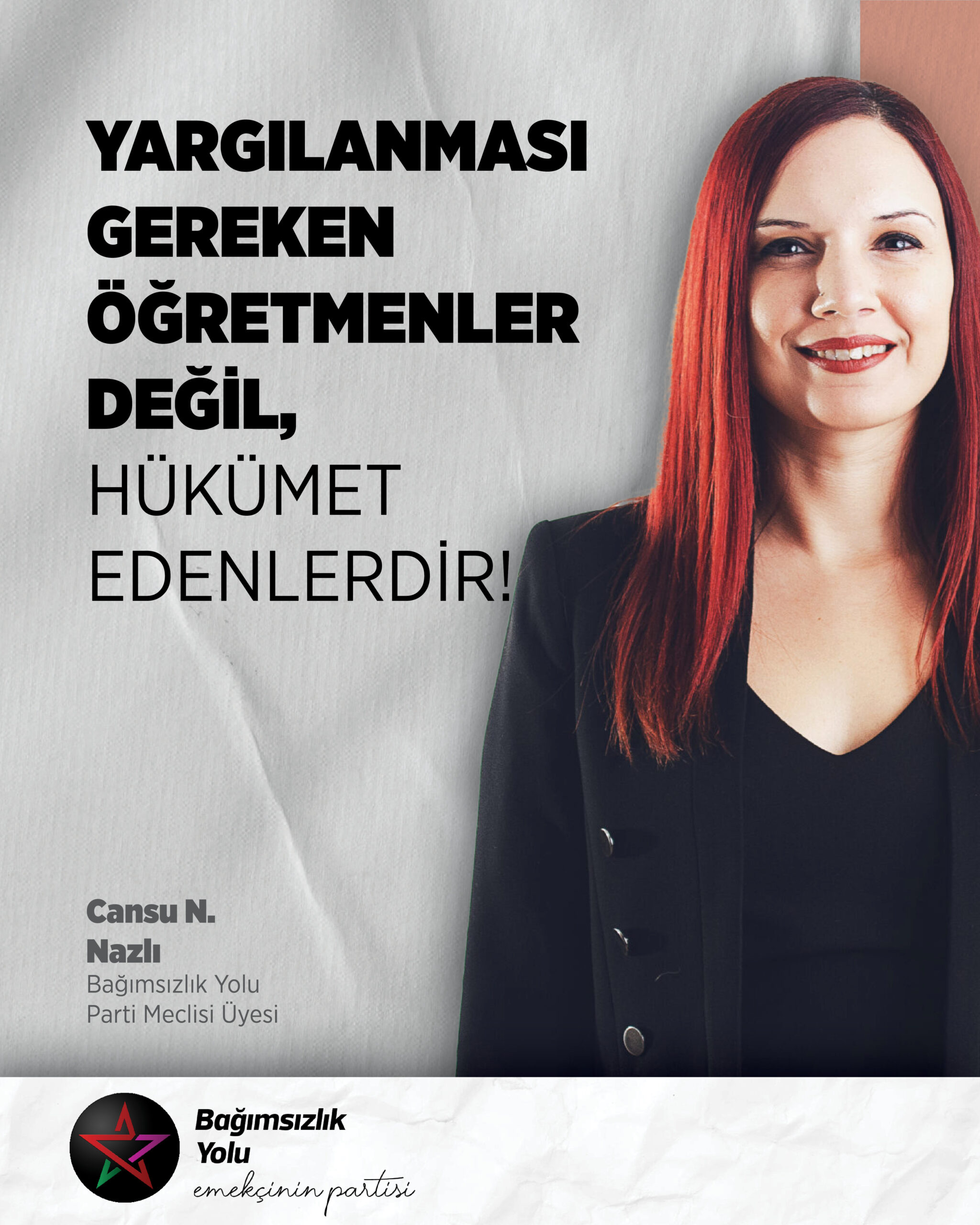 Nazlı açıklamasında, “Devletin bütçesini çocukların ücretsiz, bilimsel, laik ve nitelikli kamusal bir eğitim alabilmesi için harcamak yerine; devletin polisini, müfettişini, savcısını, mahkemesini öğretmenleri cezalandırmak için kullanmak politiktir” ifadelerine yer verdi.